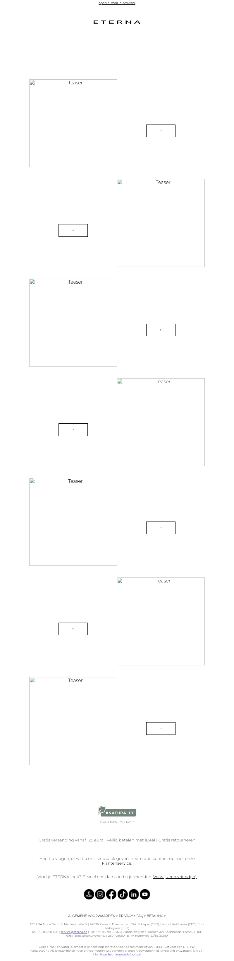 Eterna biedt u de nieuwste teasers en informatie over hun producten. Profiteer van gratis verzending vanaf €125 en veilige betaalmethoden zoals iDeal. Ontdek meer in onze nieuwsbrief.
