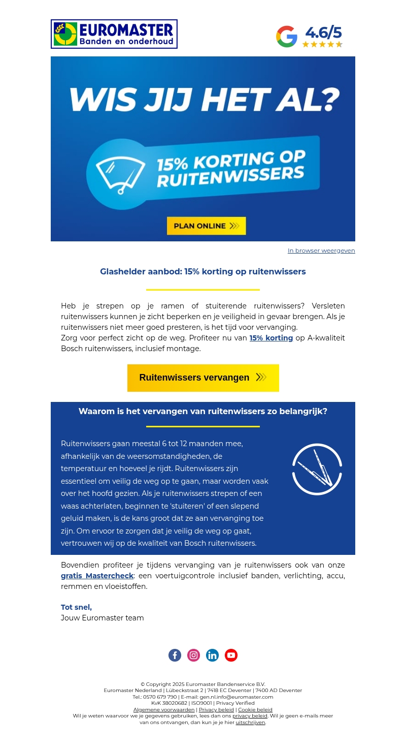 Glashelder aanbod: 15% korting op ruitenwissers