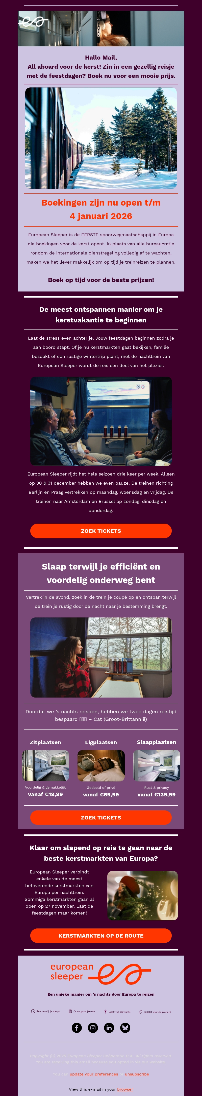 Kerst komt vroeg voor reizigers van European Sleeper!