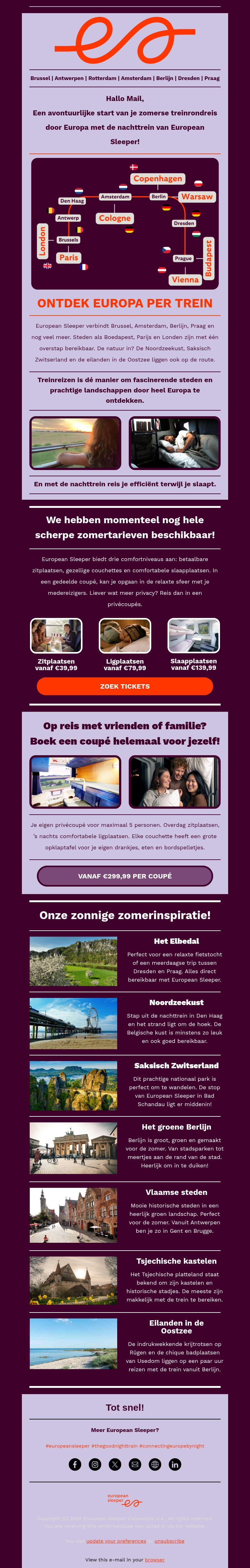 Start je zomerse rondreis door Europa met European Sleeper!