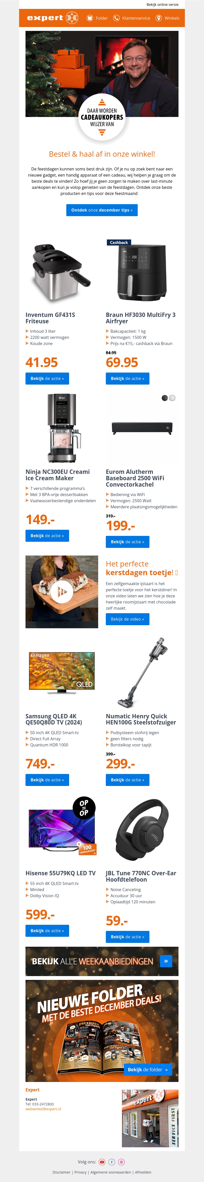 De feestdagen zijn in aantocht en wij helpen je graag met het vinden van het perfecte cadeau. Bekijk onze aanbiedingen voor geweldige gadgets en huiselijke apparaten. Mis de populaire friteuse, airfryer, en TV niet. Geniet van exclusieve deals en zorg dat je er op tijd bij bent. Maak je feestperiode onvergetelijk!