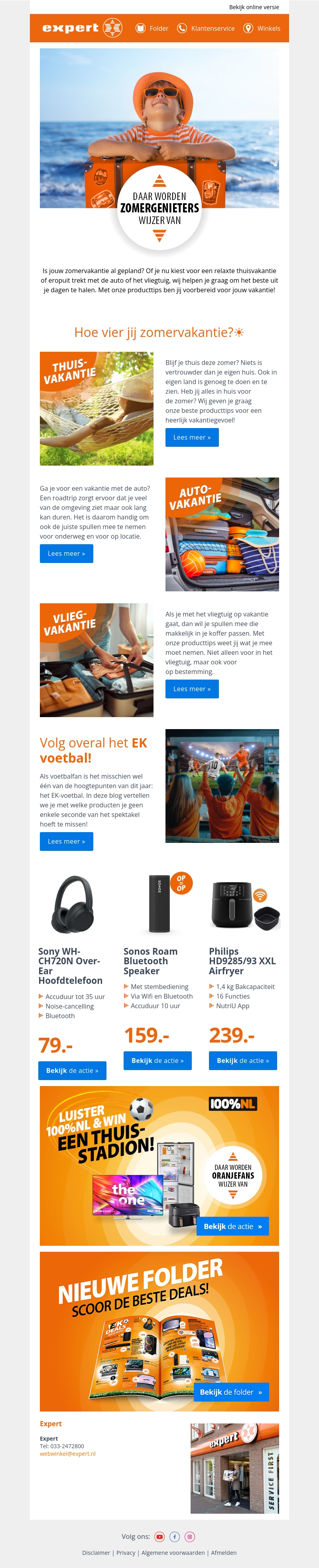 Is jouw zomervakantie al gepland? Of je nu kiest voor een relaxte thuiskomst of eropuit trekt, wij helpen je graag om het beste uit je vakantie te halen. Ontdek onze handige producten voor een thuis-, auto- of vliegvakantie en maak je zomer compleet. Volg ook het EK-voetbal overal en geniet van de beste deals op koptelefoon, speaker en airfryer.