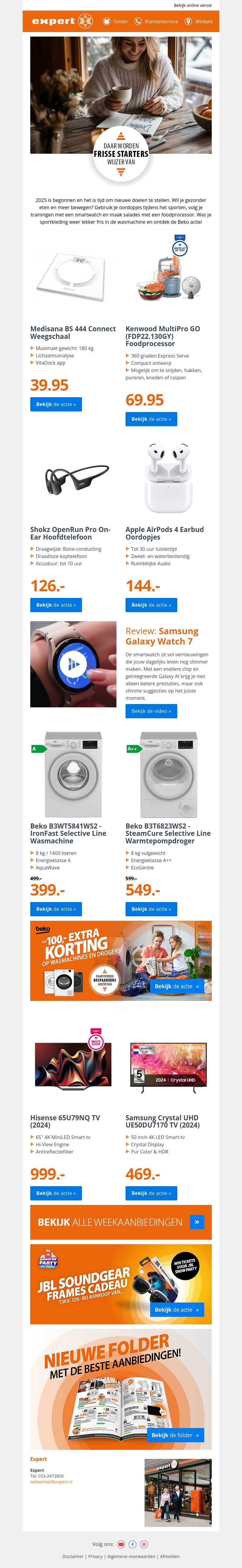 Het nieuwe jaar is de perfecte tijd om te investeren in technologie die je helpt om je voornemens te realiseren. Of je nu wilt sporten, gezonder wilt leven of je huis slimmer wilt maken, onze nieuwste aanbiedingen ondersteunen jouw doelen. Profiteer nu van scherpe deals op bijvoorbeeld de Samsung Galaxy Watch 7 en Apple AirPods 4. Mis ook de extra kortingen op wasmachines niet!