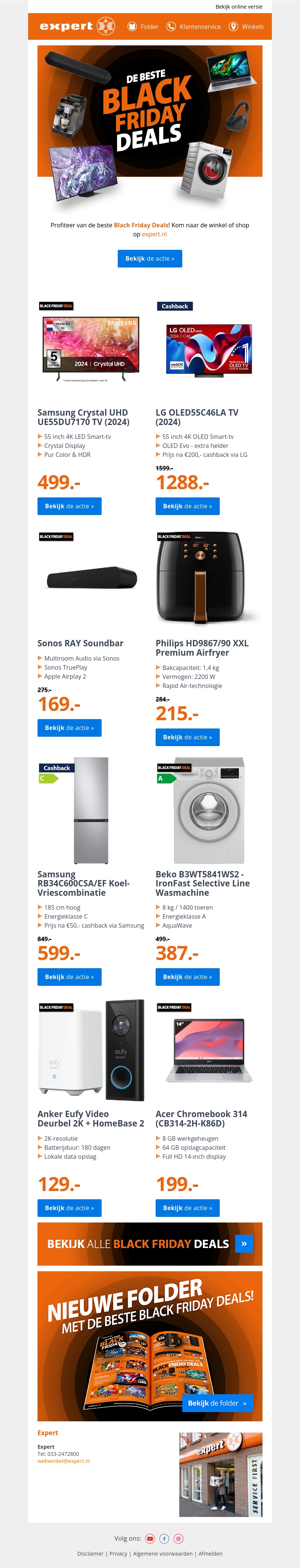 Profiteer van uitzonderlijke Black Friday deals op topmerken elektronica bij Expert. Van televisies en soundbars tot wasmachines en laptops, er is voor ieder wat wils. Ontdek kortingen op Samsung, LG, Sonos, en meer. Bekijk alle aanbiedingen online of bezoek een Expert winkel in de buurt. Acties zijn geldig zolang de voorraad strekt.