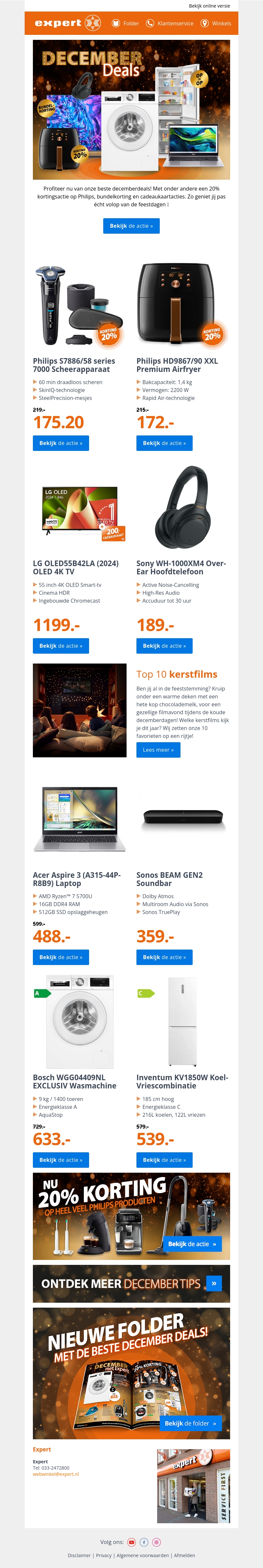 Verwen jezelf met onze ultieme decemberdeals. Mis een korting van 20% op populaire Philips-producten niet! Van geavanceerde technologie tot luxe huishoudelijke apparaten, deze deals zijn perfect voor de feestdagen. Bekijk nu onze selectie van scheren tot high-tech gadgets. Zet december in het teken van besparen en genieten. Shop nu online!