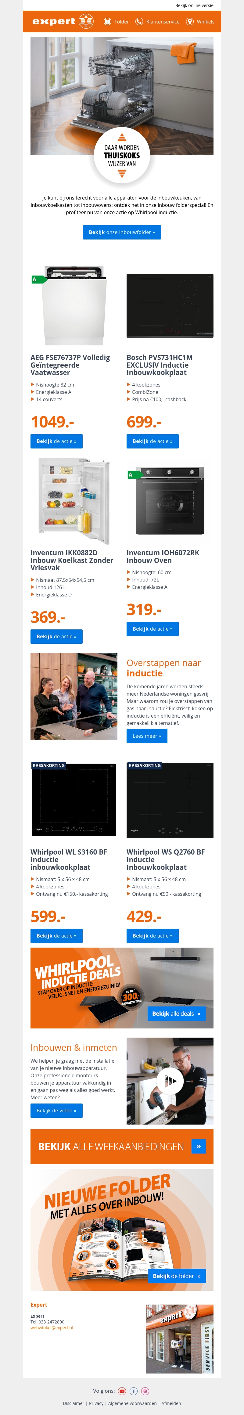 Duik in onze selectie van top inbouwapparatuur voor jouw keuken. Of het nu gaat om vaatwassers, kookplaten of koelkasten zonder vriesvak, wij hebben voor elke behoefte een oplossing. Mis de exclusieve aanbiedingen en kortingen niet. Perfect voor een complete keukenmake-over. Ontdek nu de deals van merken zoals Bosch, AEG, en Inventum.
