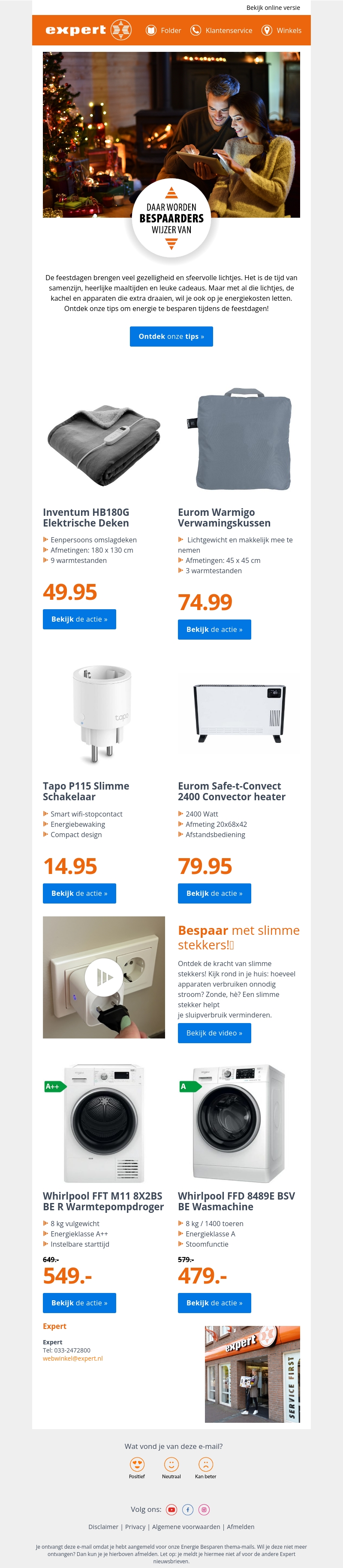 De feestdagen staan voor gezelligheid, maar ook voor extra energieverbruik. Met handige tips en energiezuinige producten kun je besparen. Expert biedt oplossingen zoals elektrische dekens en slimme stekkers die je helpen om minder energie te verbruiken zonder aan comfort in te boeten.