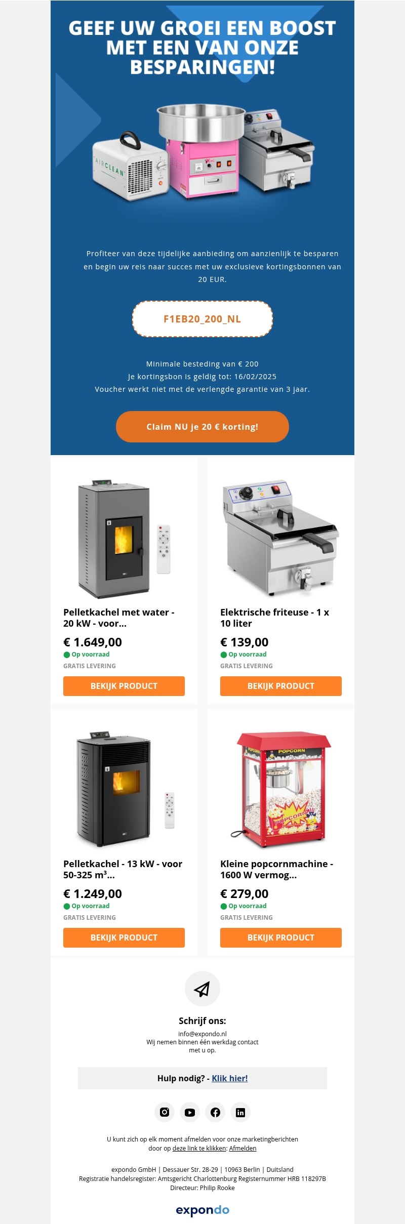 Stimuleer de groei van uw bedrijf – geniet van €20 korting, zelfs op afgeprijsde artikelen!