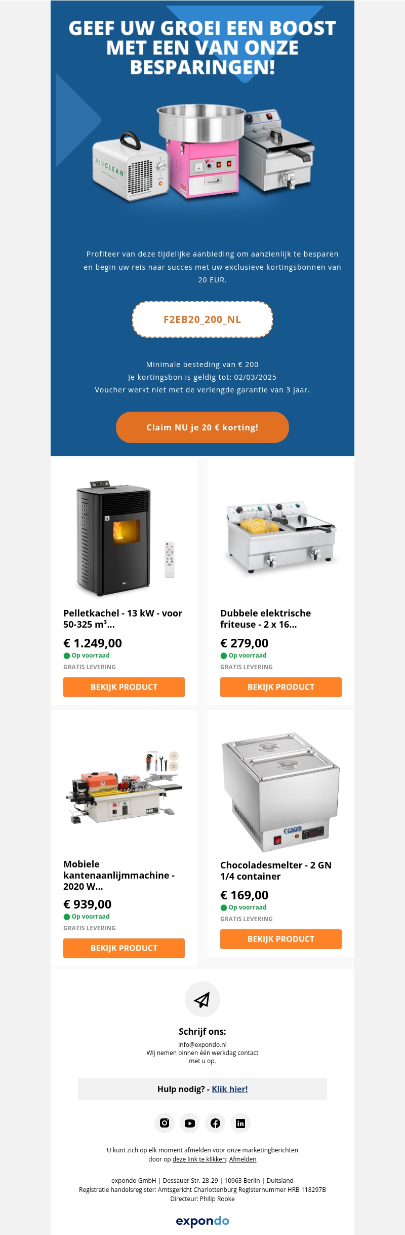 Stimuleer de groei van uw bedrijf – geniet van €20 korting, zelfs op afgeprijsde artikelen!