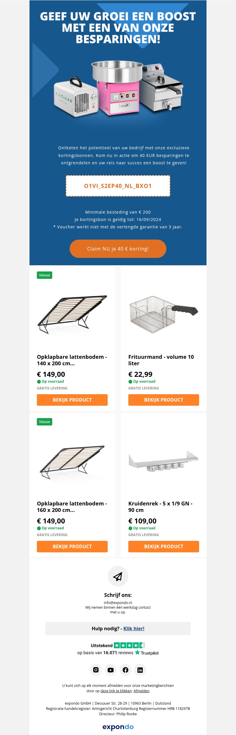 Stimuleer de groei van uw bedrijf – geniet van €20 korting, zelfs op afgeprijsde artikelen!