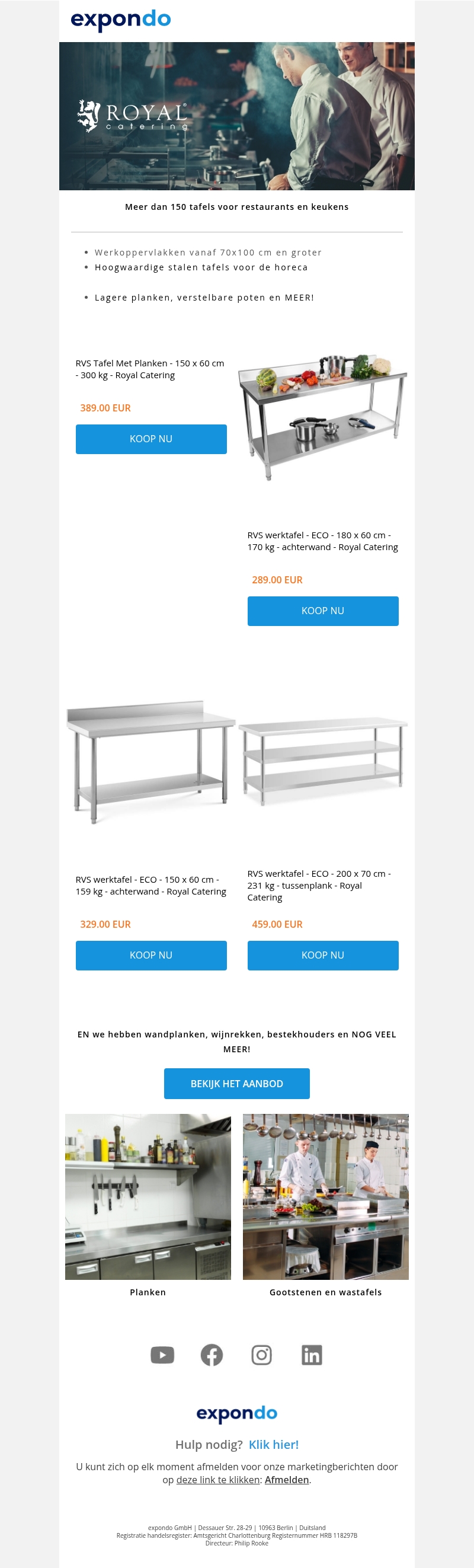 Meer dan 150 tafels voor restaurants en keukens