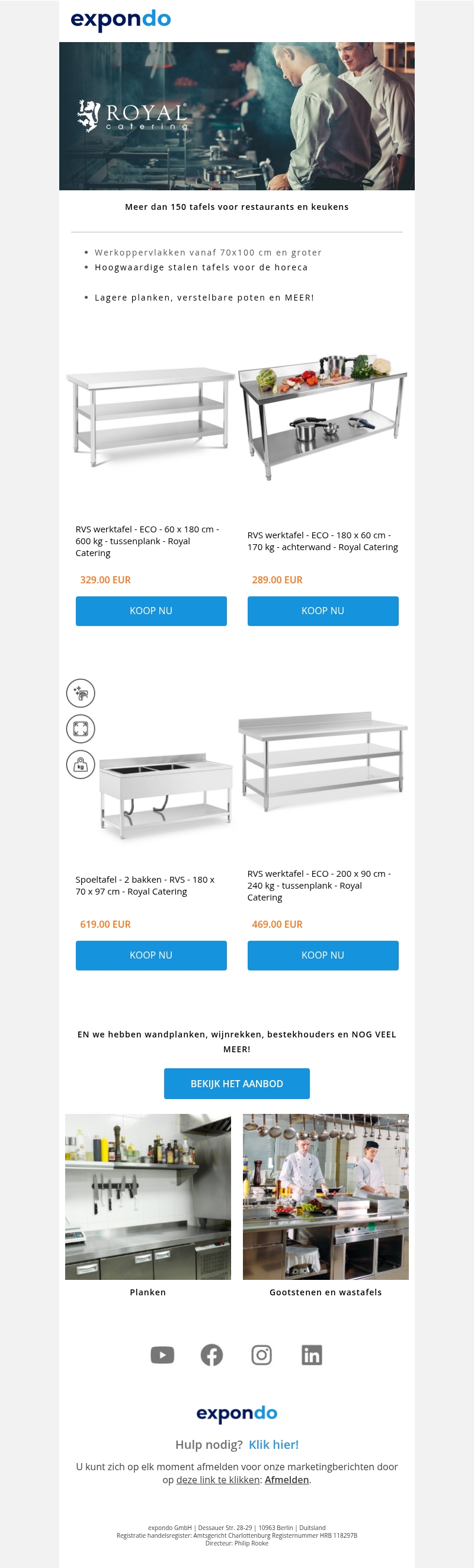 Meer dan 150 tafels voor restaurants en keukens