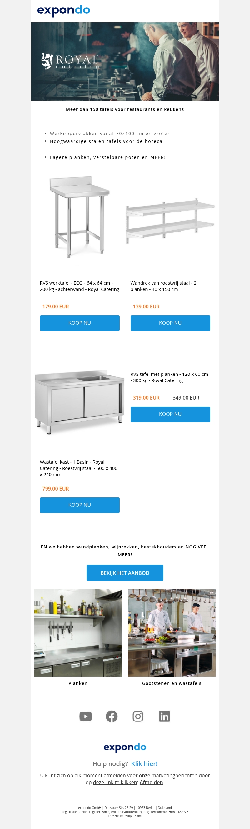 Meer dan 150 tafels voor restaurants en keukens
