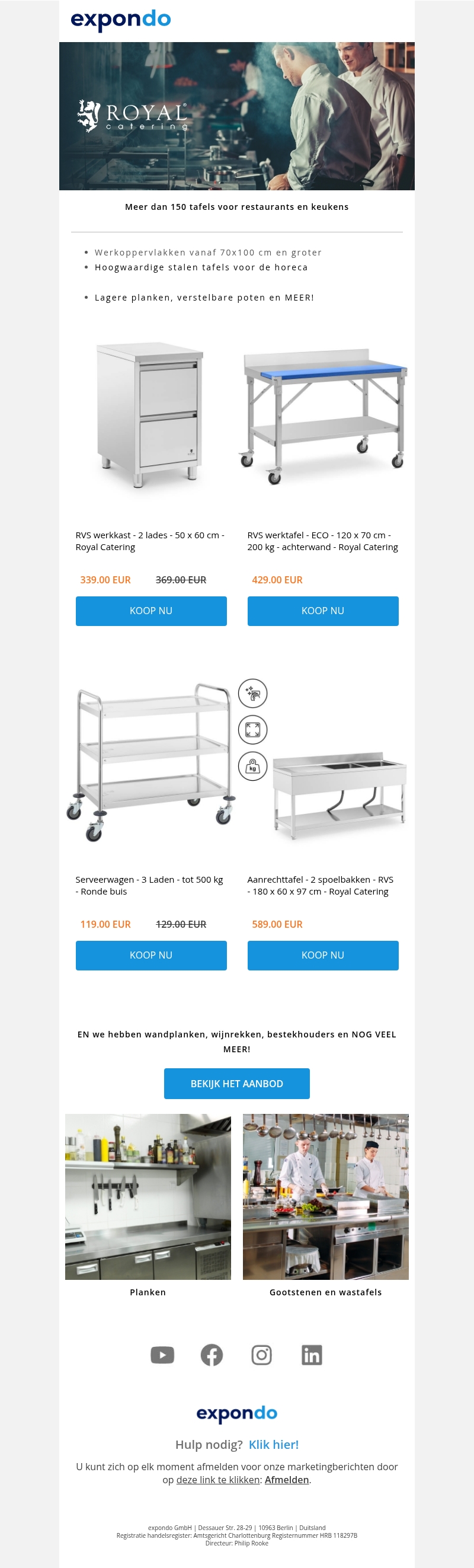Meer dan 150 tafels voor restaurants en keukens