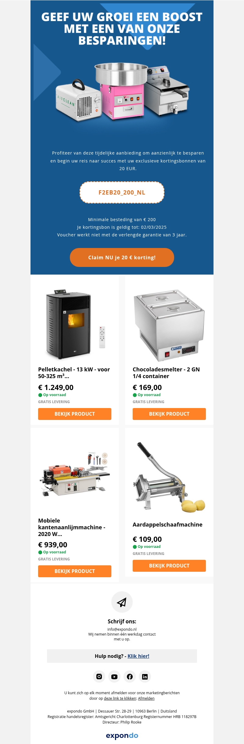 Stimuleer de groei van uw bedrijf – geniet van €20 korting, zelfs op afgeprijsde artikelen!