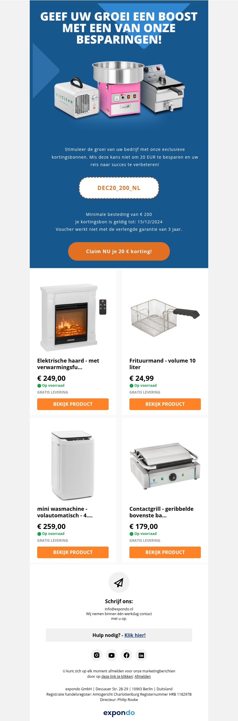 Stimuleer de groei van uw bedrijf – geniet van €20 korting, zelfs op afgeprijsde artikelen!