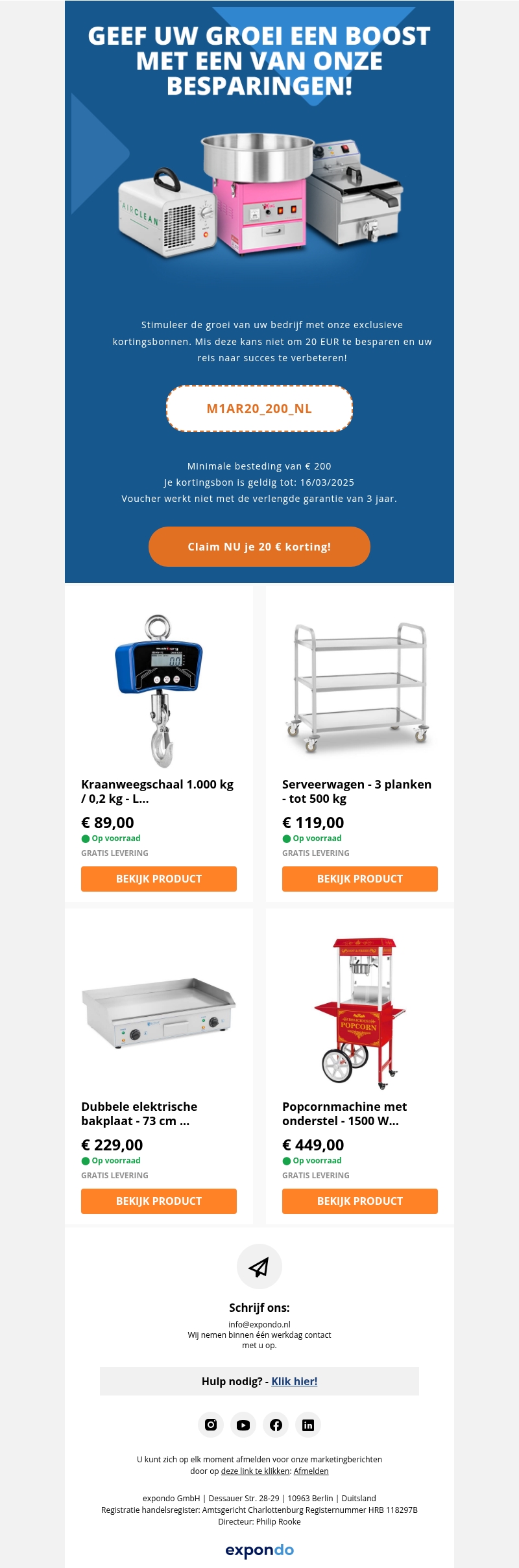 Stimuleer de groei van uw bedrijf – geniet van €20 korting, zelfs op afgeprijsde artikelen!