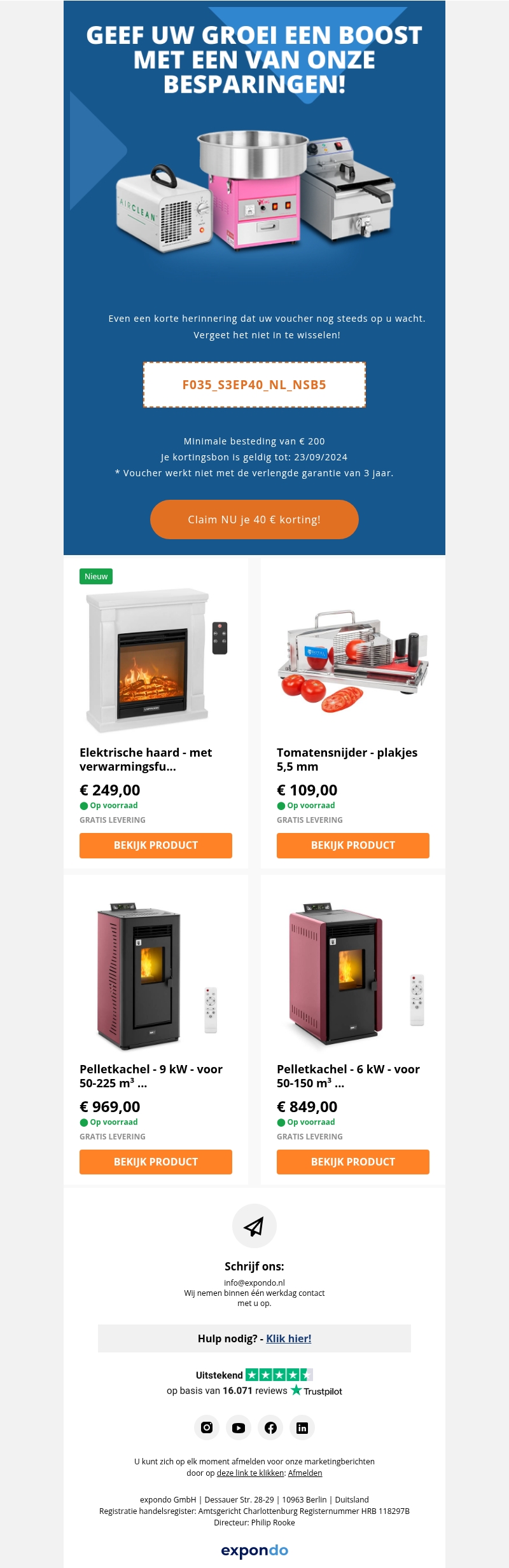Stimuleer de groei van uw bedrijf – geniet van €20 korting, zelfs op afgeprijsde artikelen!