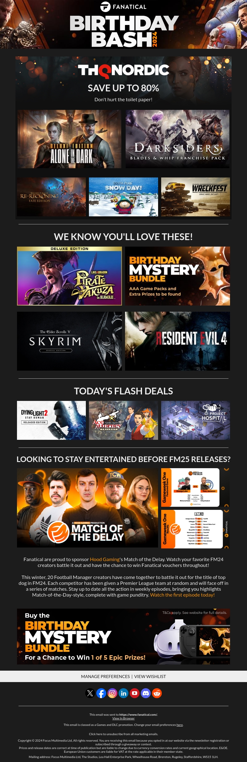 Duik in de spannende wereld van de Fanatical Birthday Bash 2024. Geniet van spectaculaire kortingen tot 80% op topgames van THQ Nordic. Mis de kans niet om mee te doen aan de Birthday Mystery Bundle en win fantastische prijzen. Blijf vermaakt met onze speciale aanbiedingen en vandaag aangeboden flash deals. Ideaal voor zowel fervente gamers als casual spelers.