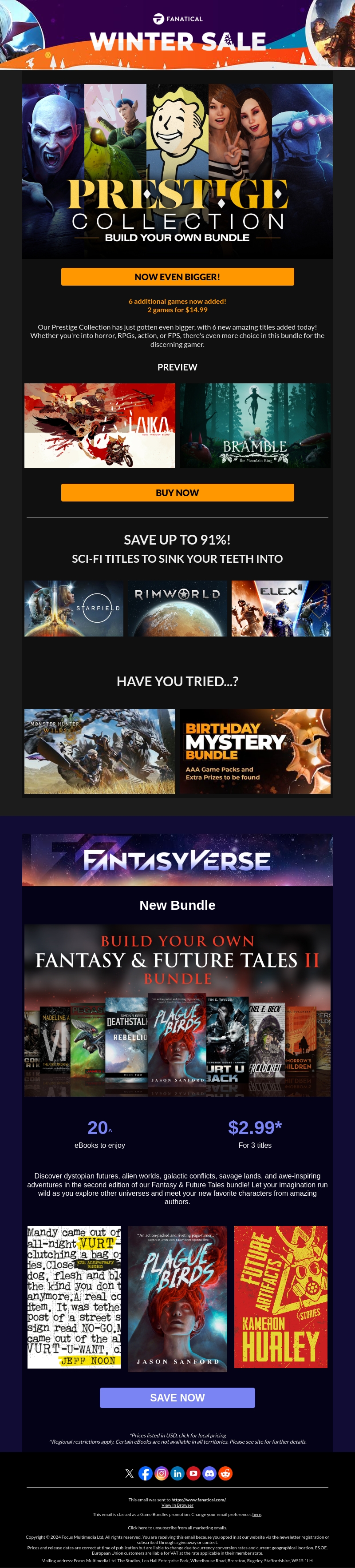 Onze Prestige Collection is nu nog groter met zes extra games toegevoegd! Kies uit spannende sci-fi titels en stel je eigen fabelachtige fantasy bundel samen. Grijp deze kans om tot 91% te besparen op je favoriete spellen en boeken.