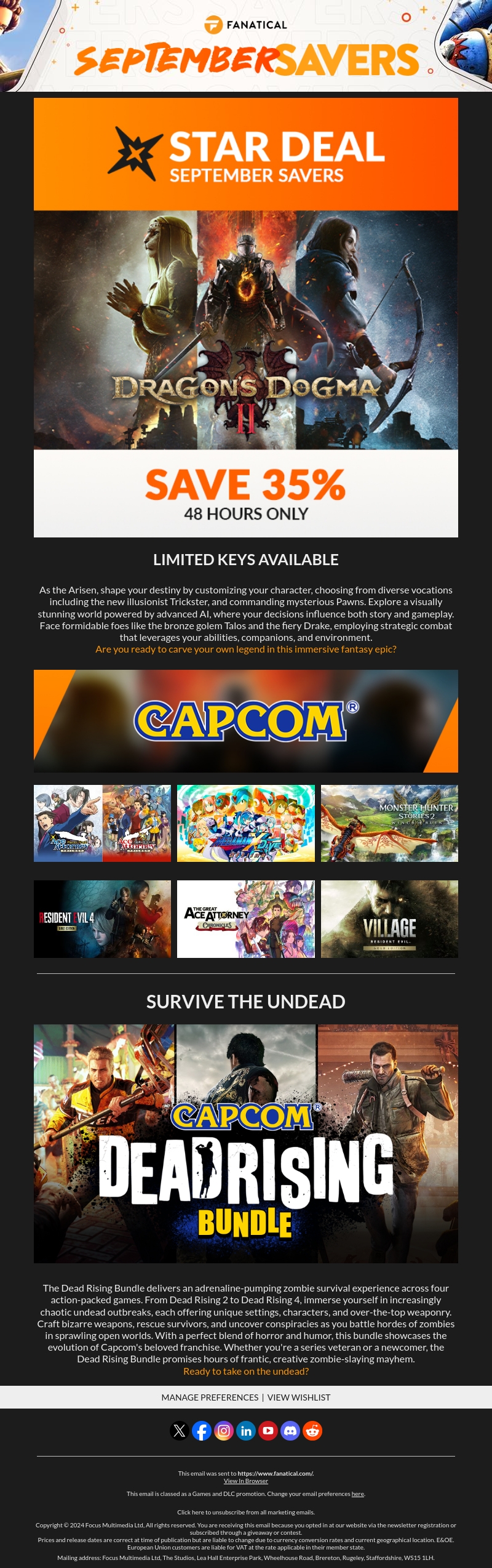 Mis deze kans niet om tot 89% te besparen op jouw favoriete Capcom-games! Ontdek de 'Star Deal' met 35% korting op Dragon's Dogma en geniet van de 'Dead Rising Bundle' voor ultiem zombie-overlevingsplezier. Beperkte sleutels beschikbaar, dus wees er snel bij!