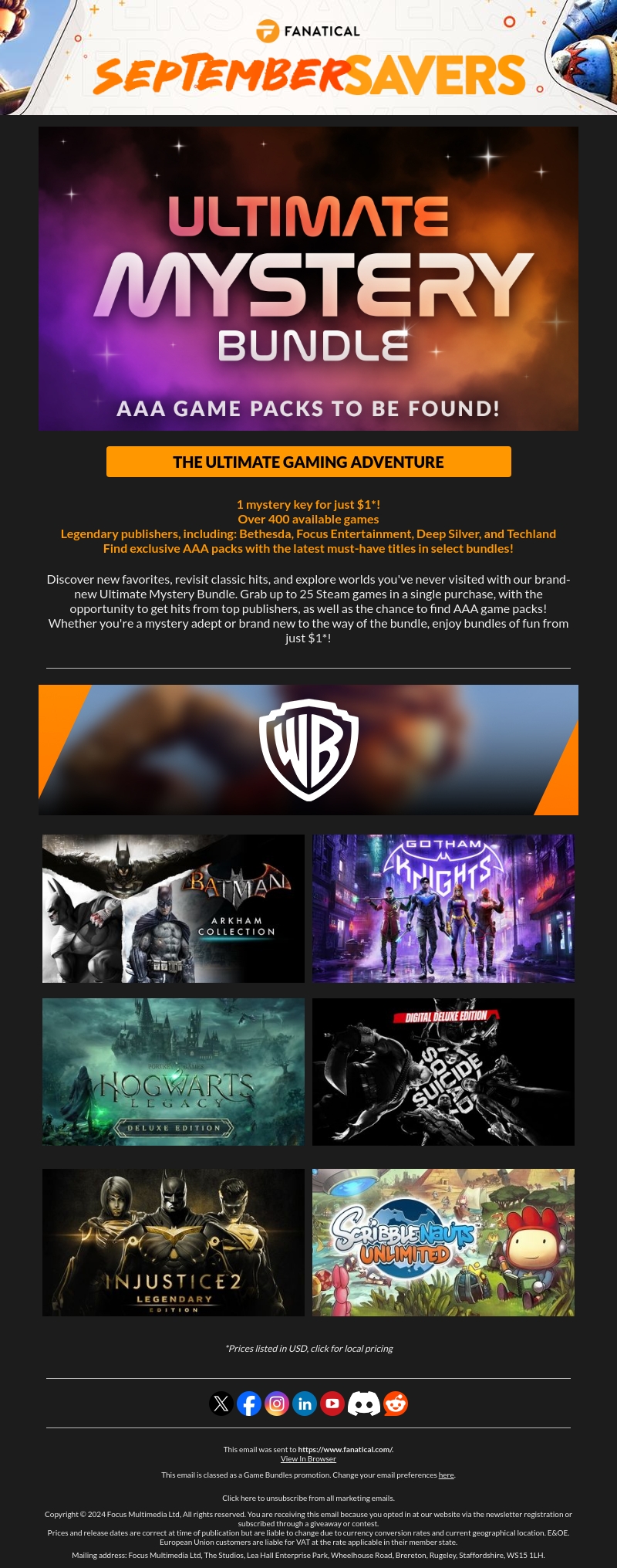 Duik in een nieuw avontuur met de Ultimate Mystery Bundle. Ontvang tot 25 Steam-spellen van topuitgevers voor slechts $1. Deze bundel bevat de nieuwste must-have titels van onder andere Bethesda, Focus Entertainment en Deep Silver. Verhoog je game-ervaring en ontdek verborgen juweeltjes voor een ongelooflijke prijs.