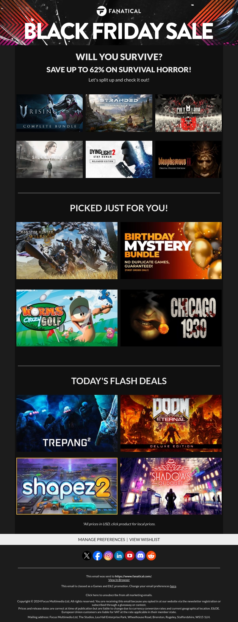Ervaar de spanning met geweldige kortingen op survival horror games tijdens onze Black Friday-verkoop. Bespaar tot 62% op topgames zoals V Rising en Dying Light 2. Duik in speciaal geselecteerde bundels en profiteer van bliksemdeals voor een ongeëvenaarde gaming-ervaring.