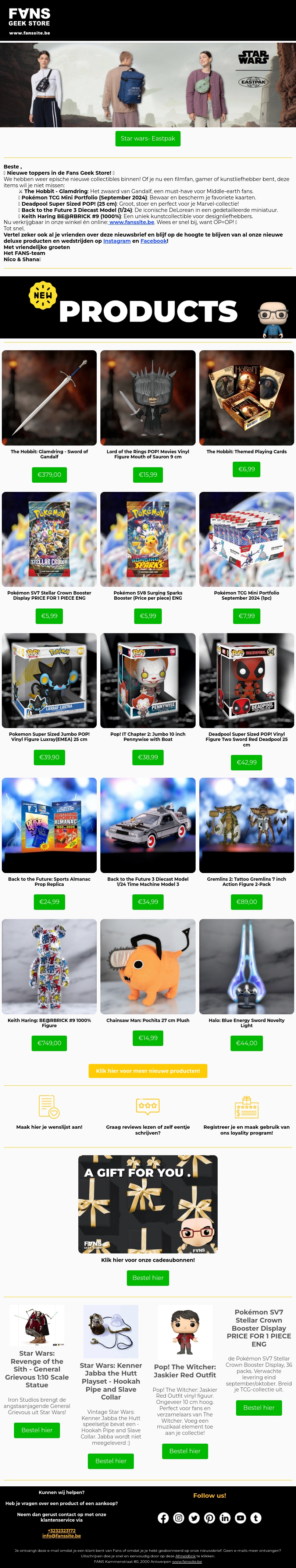 De Fans Geek Store presenteert de nieuwste collectibles voor elke fan. Ontdek zeldzame items zoals Gandalf’s zwaard en unieke Deadpool-figuren. Pokémon-fans kunnen genieten van nieuwe booster packs en meer. Perfect voor verzamelaars en liefhebbers van alle leeftijden.
