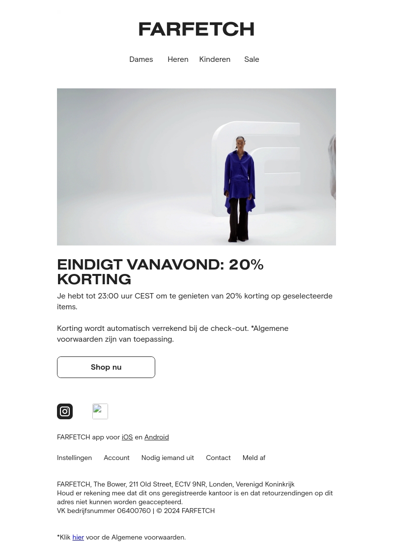 Mis deze kans niet! Geniet vandaag tot 23:00 uur CEST van 20% korting op geselecteerde items bij Farfetch. De korting wordt automatisch verrekend bij checkout. Algemene voorwaarden zijn van toepassing.