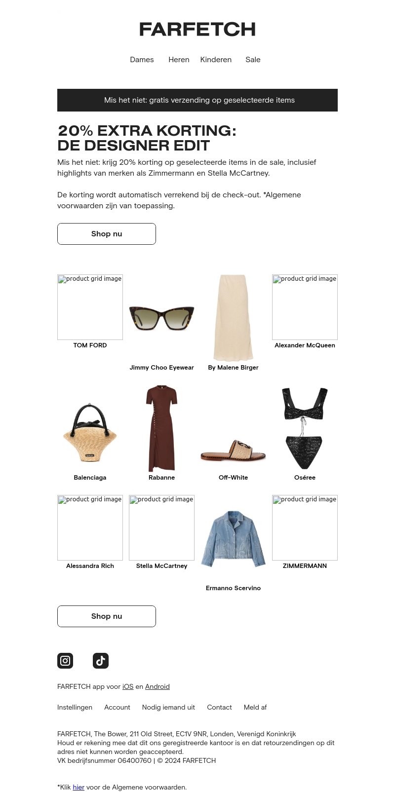 Ontvang nu 20% korting op geselecteerde designer items bij Farfetch! Inclusief merken als Stella McCartney en Zimmermann. De korting wordt automatisch verrekend bij het afrekenen. Algemene voorwaarden zijn van toepassing. Mis het niet en shop nu!