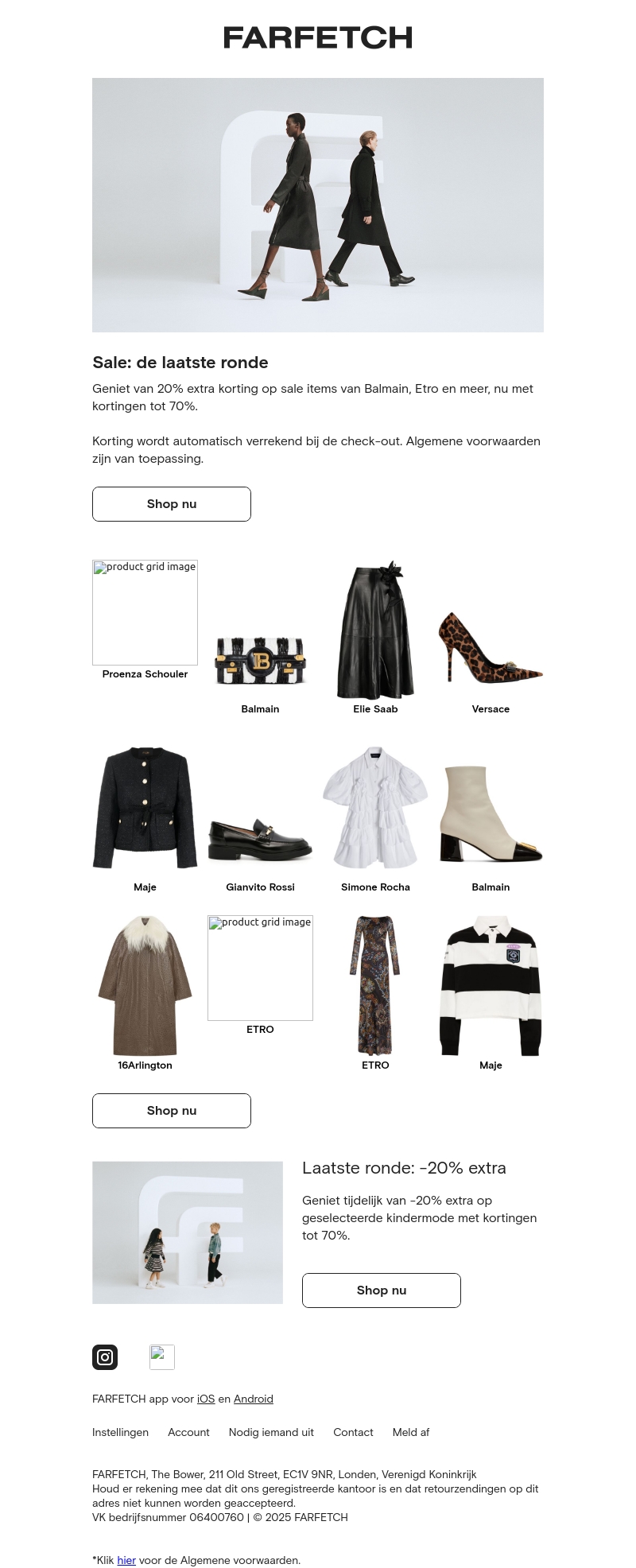 Geniet van 20% extra korting op sale items van merken als Balmain, Etro, en meer. Shop nu modieuze stijlen met kortingen tot 70%. Korting wordt automatisch verrekend bij de check-out. Er gelden algemene voorwaarden.