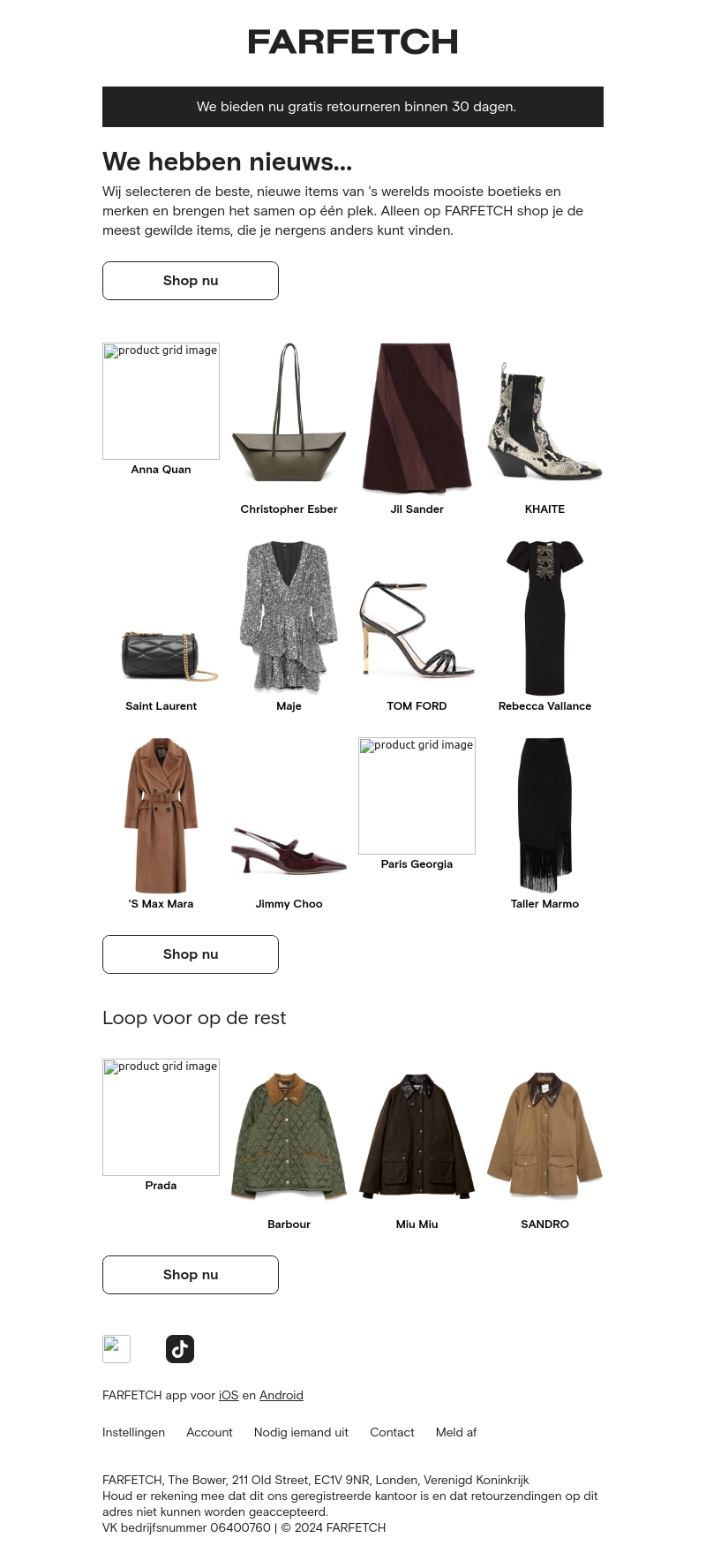 FARFETCH presenteert een exclusieve collectie nieuwe mode-items van 's werelds beste boetieks en merken. Ontdek unieke stukken van designers zoals Anna Quan, Christopher Esber en Jil Sander. Shop nu en profiteer van gratis retournering binnen 30 dagen. Vind de items die je nergens anders kunt krijgen bij FARFETCH.