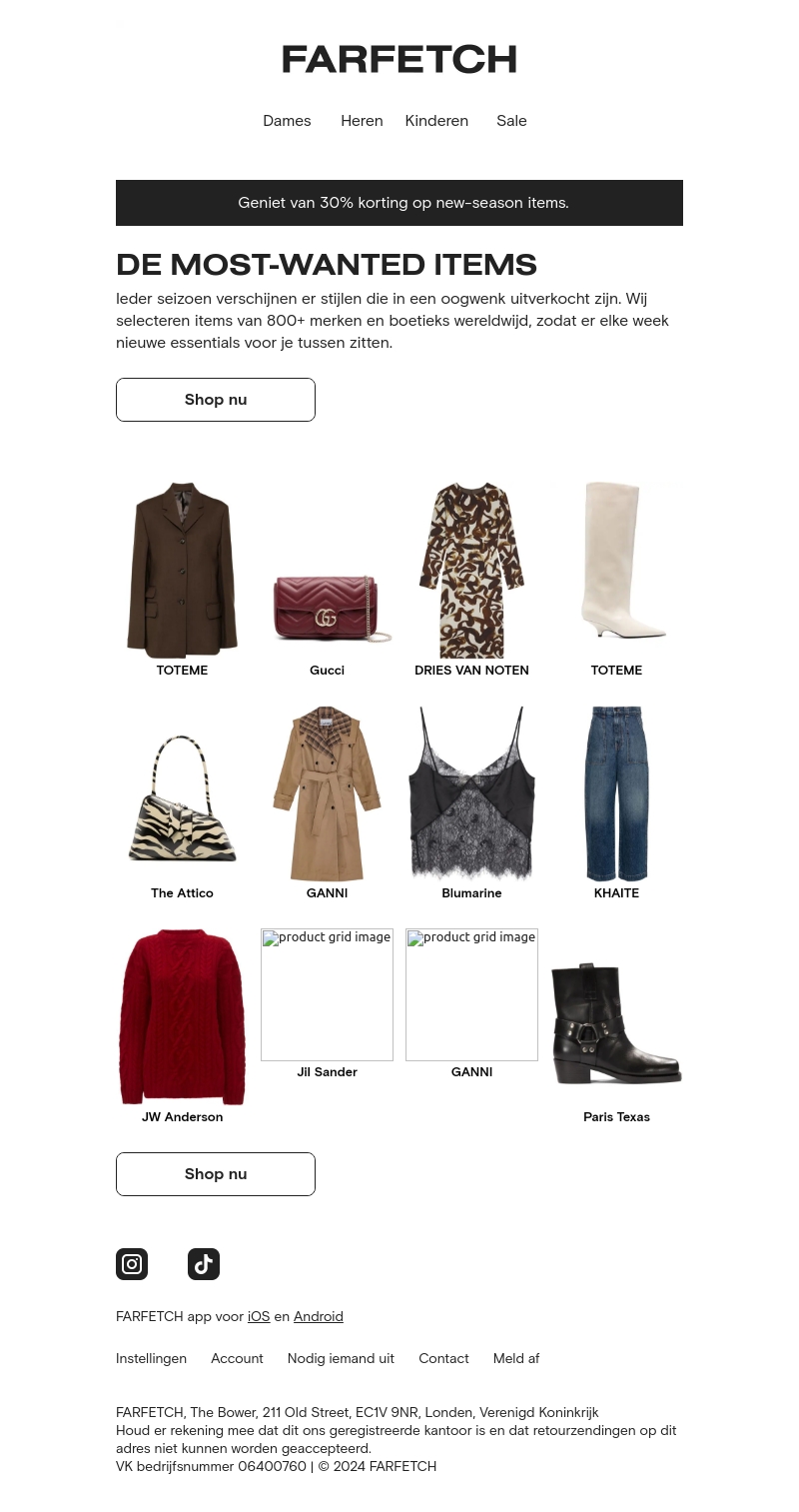 Elk seizoen brengt nieuwe stijlen die razendsnel uitverkocht zijn. FARFETCH selecteert items van 800+ merken en boetieks wereldwijd, zodat je elke week nieuwe essentials kunt vinden. Shop nu en profiteer van 30% korting op new-season items.