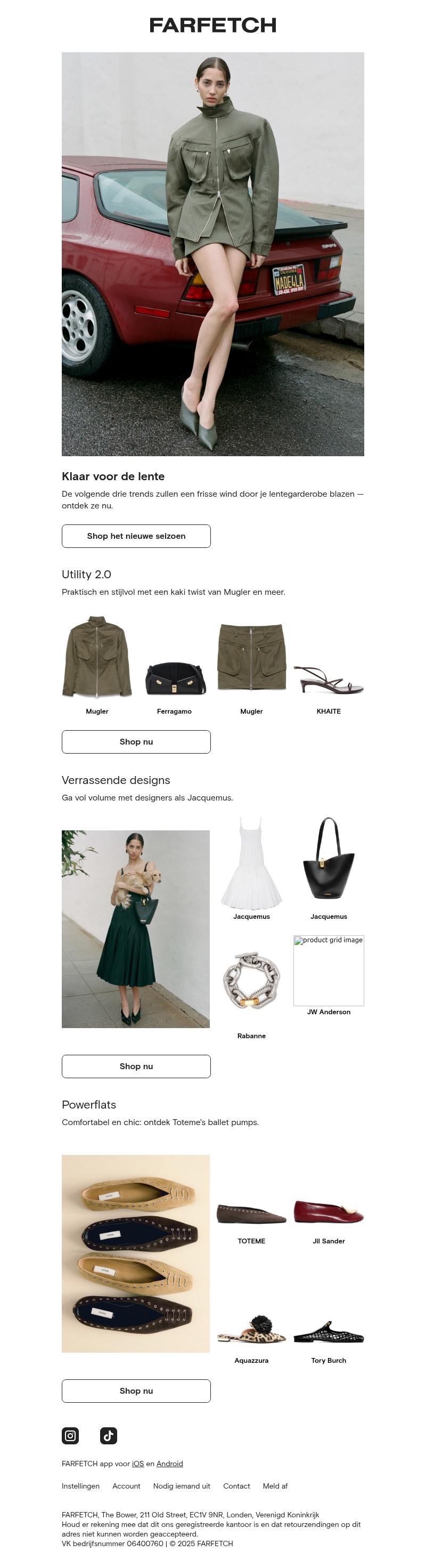 Deze nieuwsbrief van Farfetch nodigt je uit om je garderobe te vernieuwen met de nieuwste lentetrends. Van praktische en stijlvolle utility looks tot verrassende volumineuze designs en comfortabele powerflats, er is iets voor elke smaak. Ontdek de unieke stijlen van topmerken zoals Mugler, Jacquemus, en Toteme. Geef je garderobe een frisse wind met deze inspirerende keuzes voor het voorjaar.