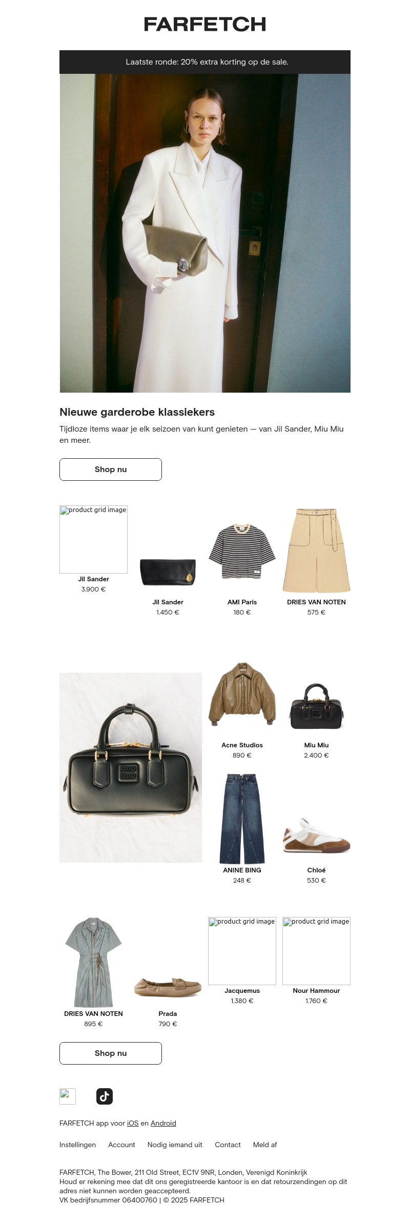Verfris je stijl met tijdloze klassiekers van topmerken als Jil Sander en Miu Miu. Geniet van een laatste ronde extra kortingen op de sale en voeg veelzijdige items aan je collectie toe. Van elegante tassen tot stijlvolle kledingstukken, ontdek het beste van Farfetch.