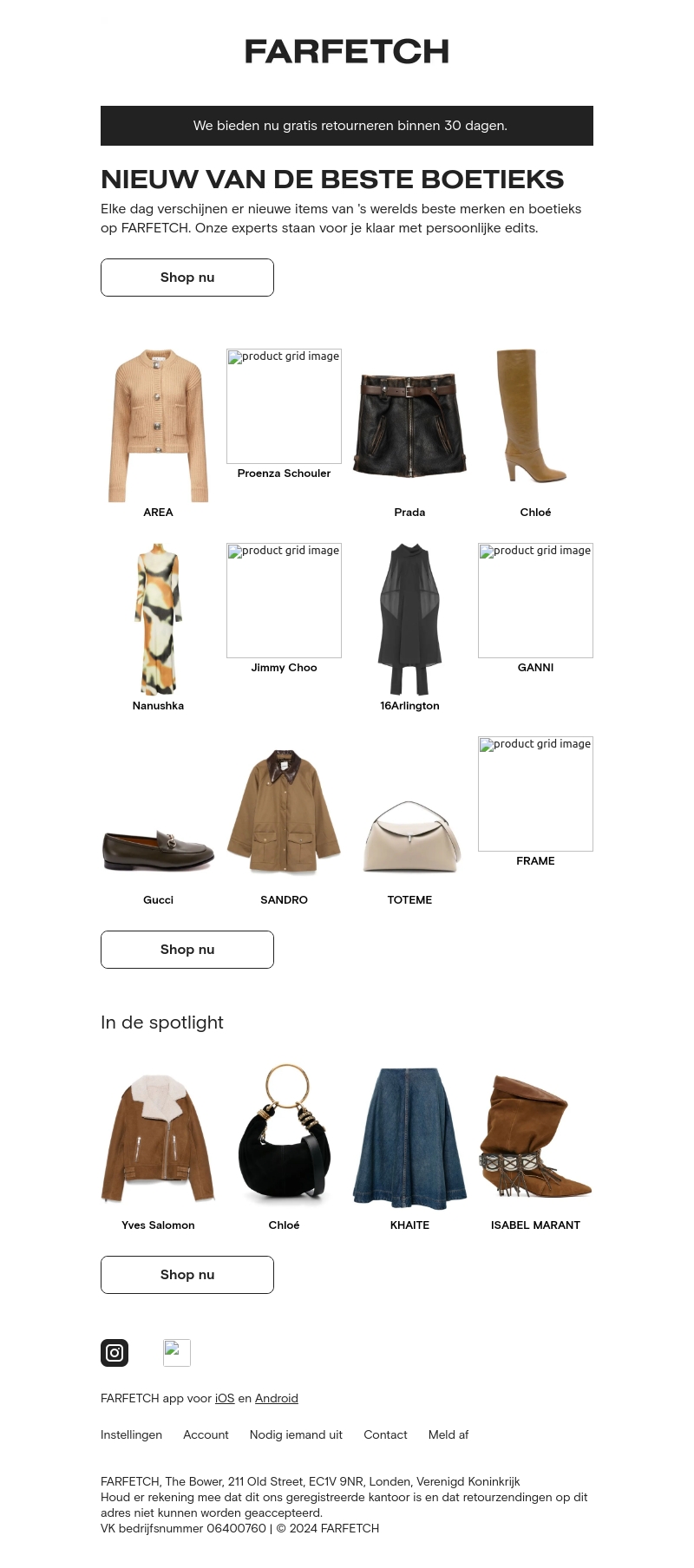 Farfetch introduceert elke week nieuwe items van 's werelds beste boetieks. Shop de nieuwste modecollecties van topmerken als Gucci, Prada, en Chloé. Profiteer van gratis retourneren binnen 30 dagen. Ontdek persoonlijke edities en blijf stijlvol actueel. Mis je kans niet om met de nieuwste trends mee te gaan.