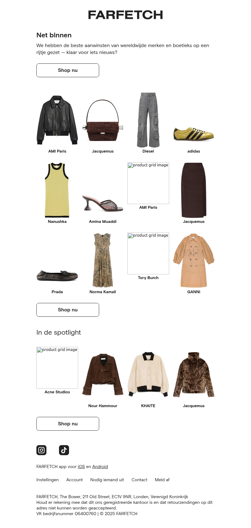Verwen jezelf met de nieuwste mode-items van wereldberoemde merken zoals AMI Paris, Jacquemus, en Adidas. Ontdek stijlvolle jassen, modieuze tassen, en chique schoenen. Bij FARFETCH vind je alles wat je nodig hebt om je garderobe te vernieuwen.