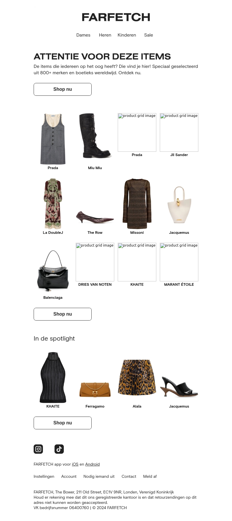 Deze nieuwsbrief van Farfetch presenteert de meest gewilde items van topmerken zoals Prada, Miu Miu, Jil Sander en meer. Ontdek nu de meest trendy kleding en accessoires via ons exclusieve aanbod.
