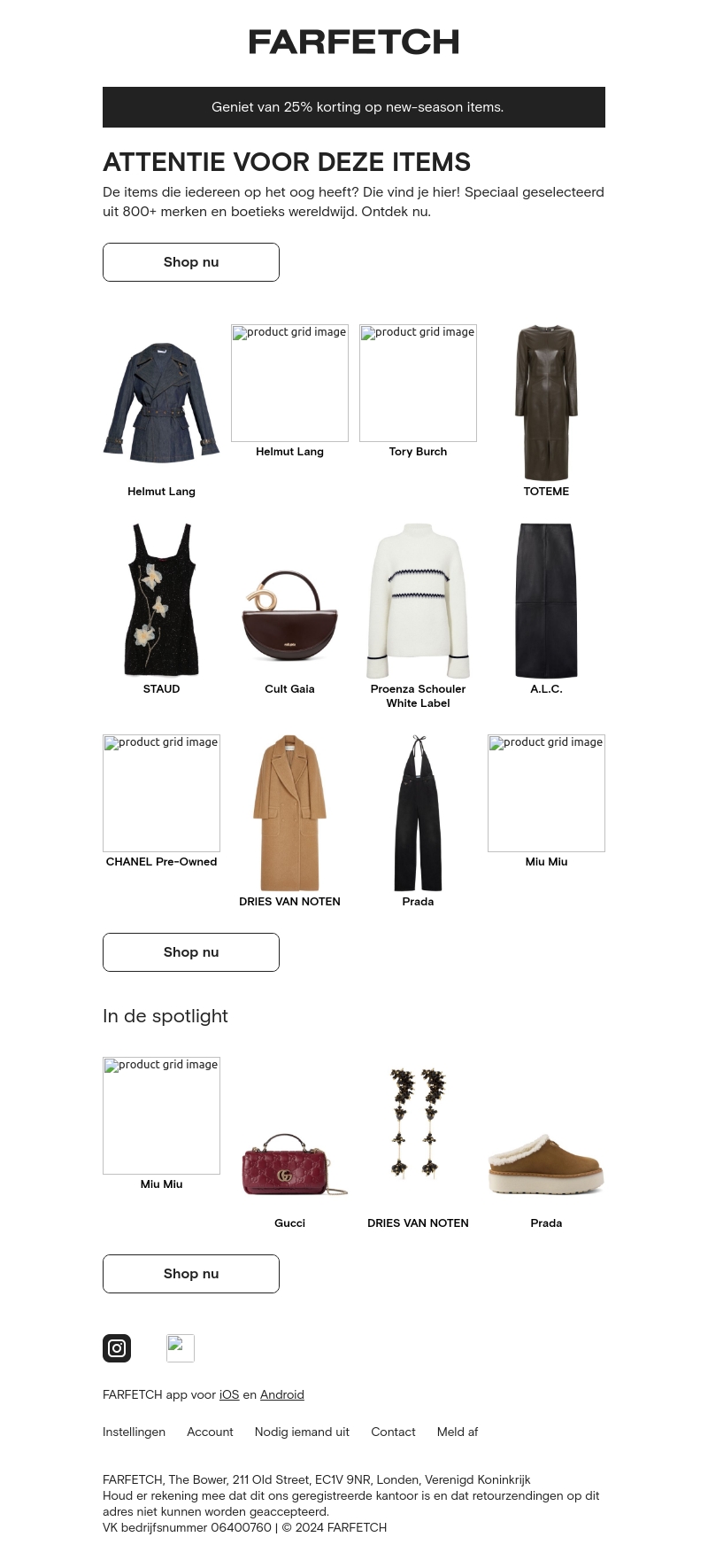 Farfetch presenteert een speciale selectie van de meest gewilde items die wereldwijd verkrijgbaar zijn. Geniet van 25% korting op deze nieuwe seizoen items en ontdek topmerken zoals Helmut Lang, CHANEL Pre-Owned, en meer. Mis deze kans niet om de perfecte look te scoren!