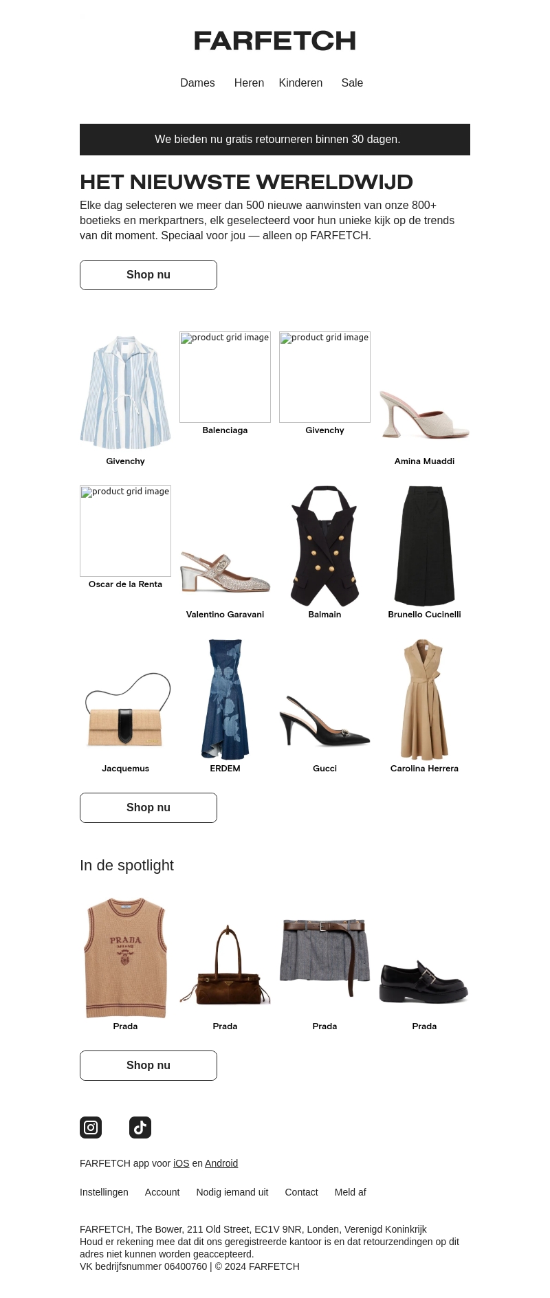 Elke dag selecteert Farfetch meer dan 500 nieuwe aanwinsten van meer dan 800 boetieks en merkpartners. Ontdek de nieuwste trends en exclusieve stijlen speciaal voor jou. Geniet nu van gratis retourneren binnen 30 dagen!