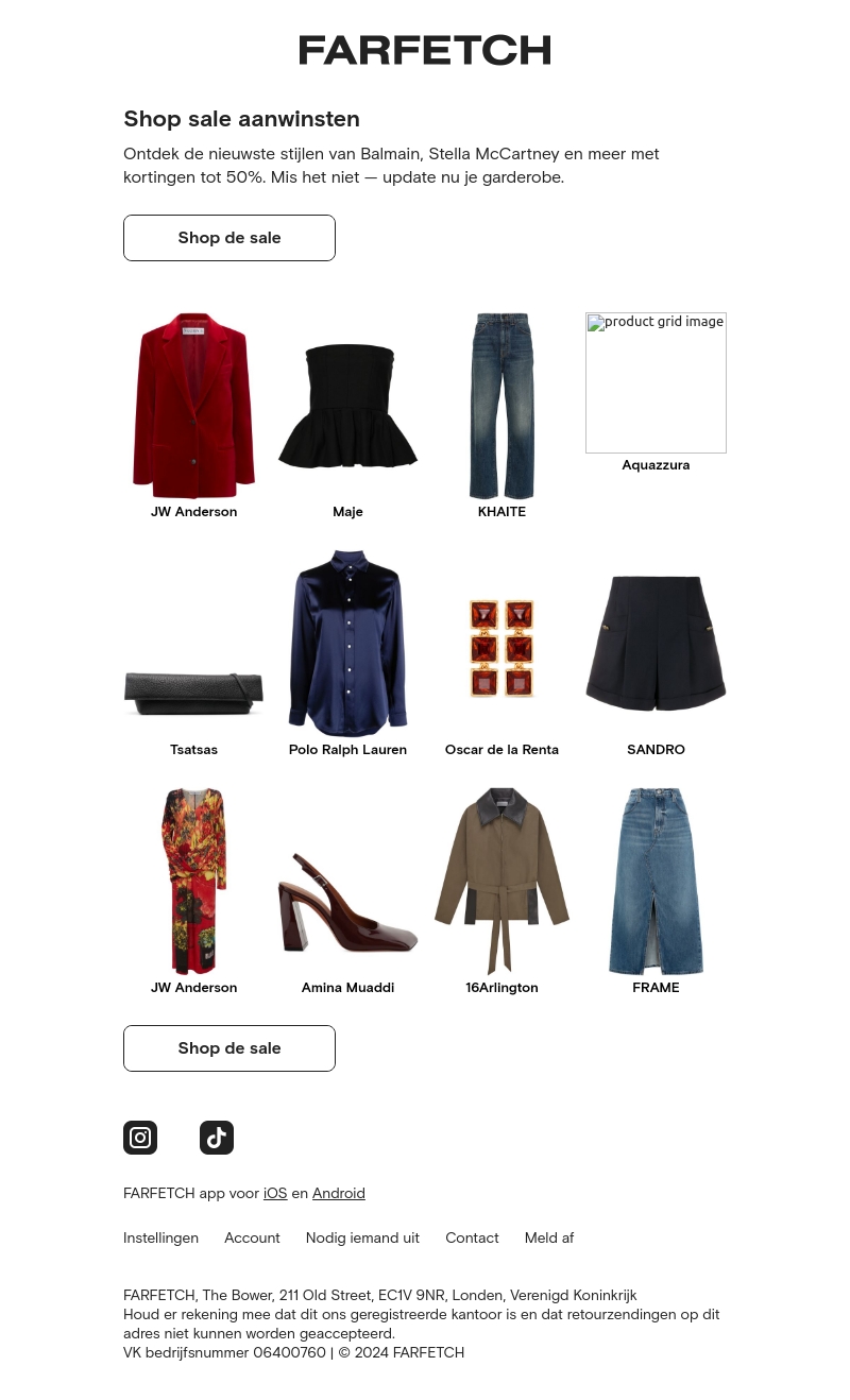 Mis de kans niet om je garderobe te vernieuwen met stijlen van topmerken zoals Balmain en Stella McCartney met kortingen tot 50%. Ontdek een variëteit aan producten zoals kleding, schoenen en accessoires. Bezoek nu de sale en upgrade je look zonder de bank te breken.