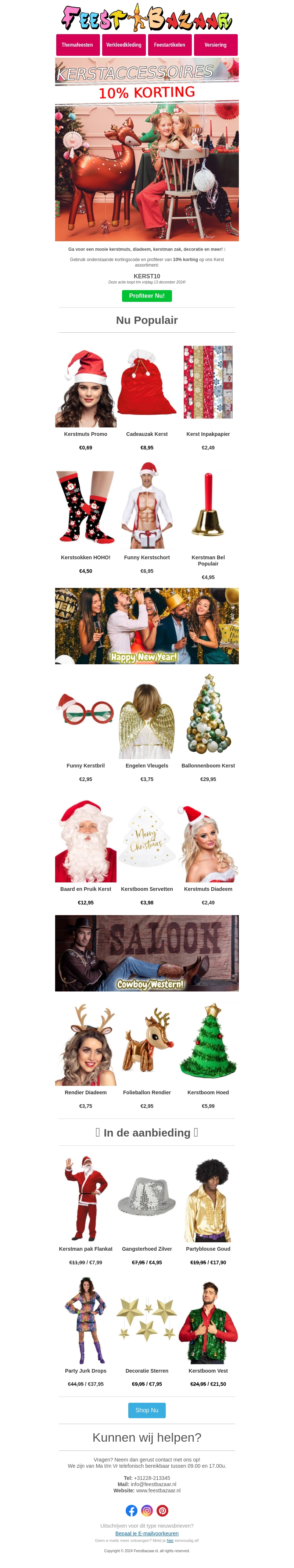Ontdek de magie van kerst met 10% korting op al je favoriete kerstaccessoires en decoraties. Of je nu op zoek bent naar een nieuwe kerstboom, feestelijke verlichting of grappige kerstoutfits, wij hebben het allemaal. Mis deze kans niet om je huis sprankelend en feestelijk te maken.