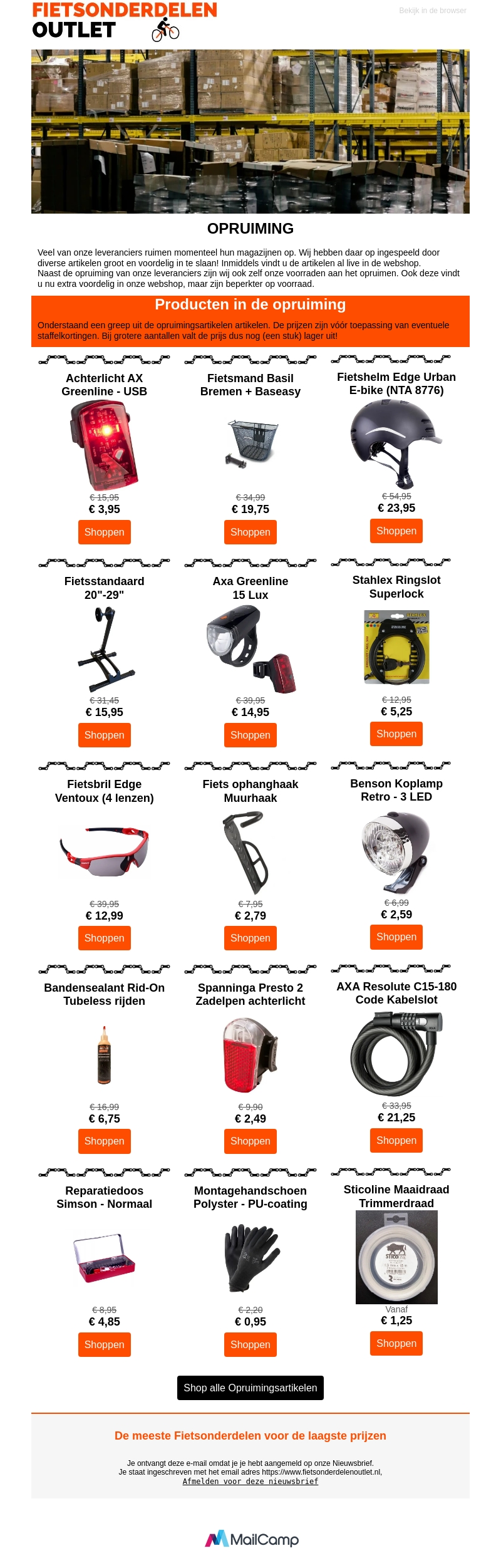 OPRUIMING! Veel producten extra voordelig en in grote aantallen ingekocht