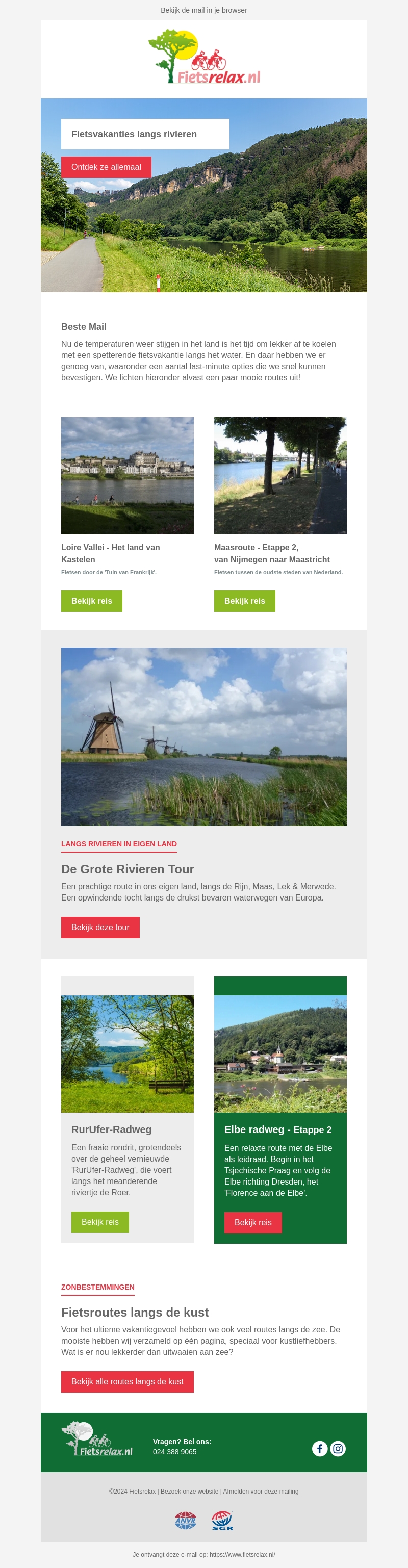 Nu de temperaturen weer stijgen, is het de perfecte tijd voor een fietsvakantie langs het water. Ontdek de Loire Vallei, de Maasroute, en geniet van last-minute opties. Lees meer over de mooiste routes en plan je volgende fietsvakantie nu!
