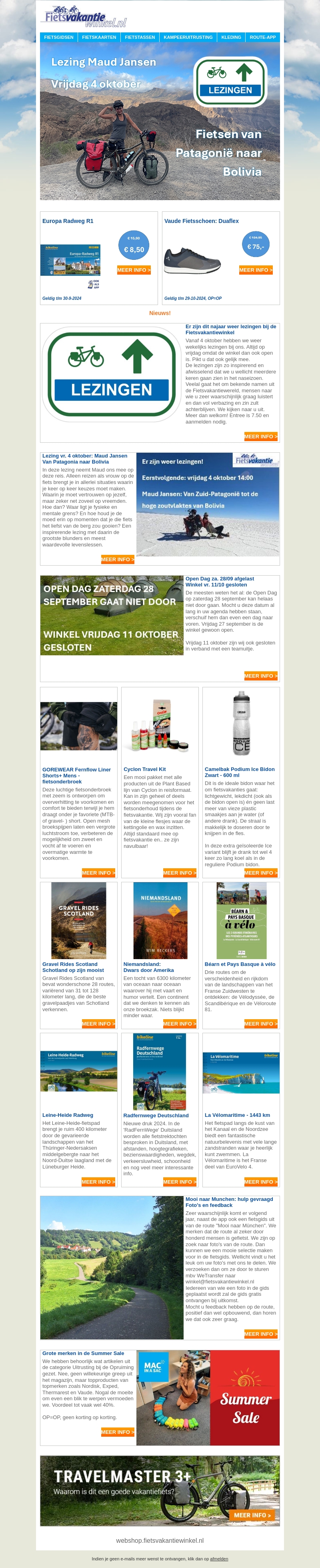 Fietsvakantiewinkel Nieuwsbrief September