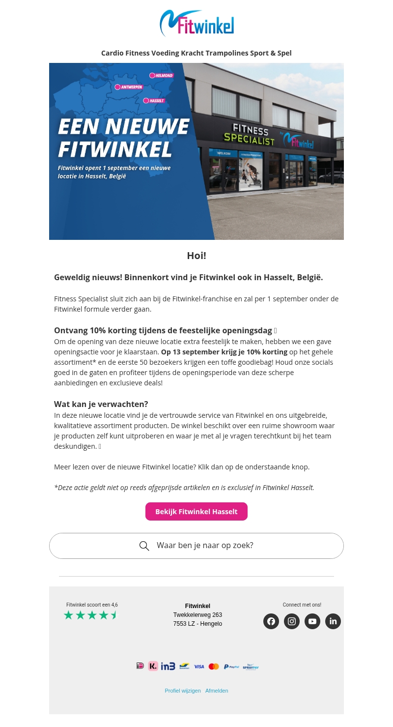 π Feestelijke opening Fitwinkel Hasselt - 10% korting voor jou!