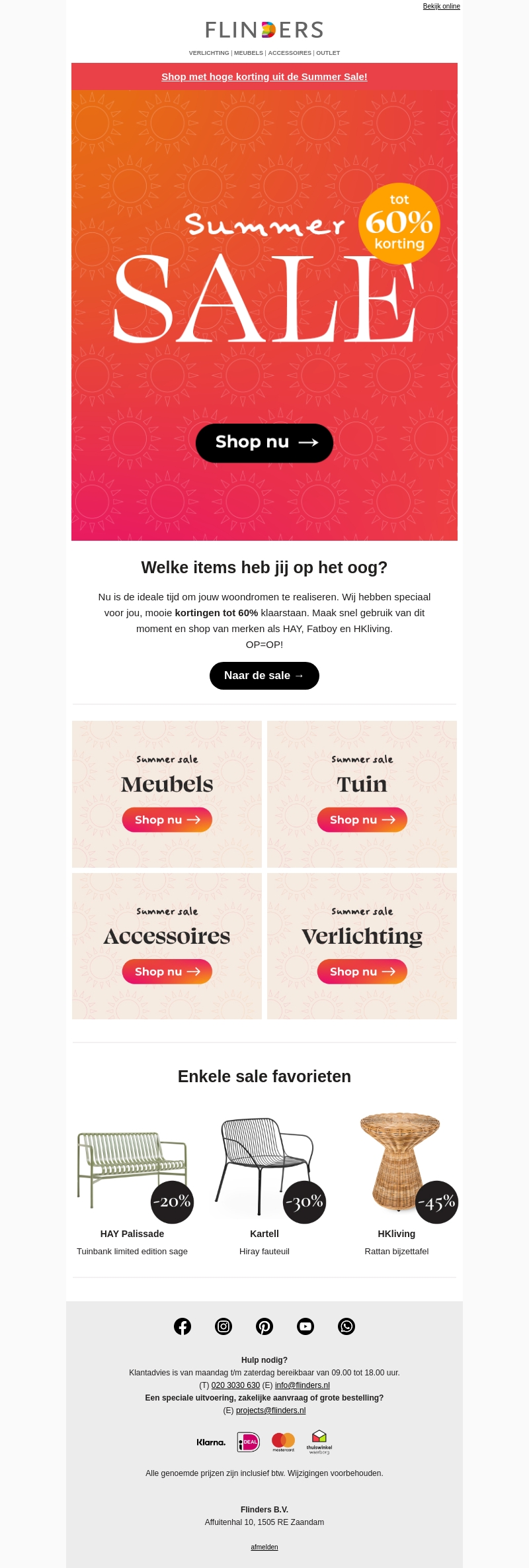 Nu is de perfecte tijd om jouw woonwensen in vervulling te laten gaan met onze zomeruitverkoop! Ontvang kortingen tot 60% op verschillende items. Mis je kans niet om te shoppen bij merken zoals HAY, Fatboy en HKliving. Bekijk onze geselecteerde favorieten en vind de beste deals.