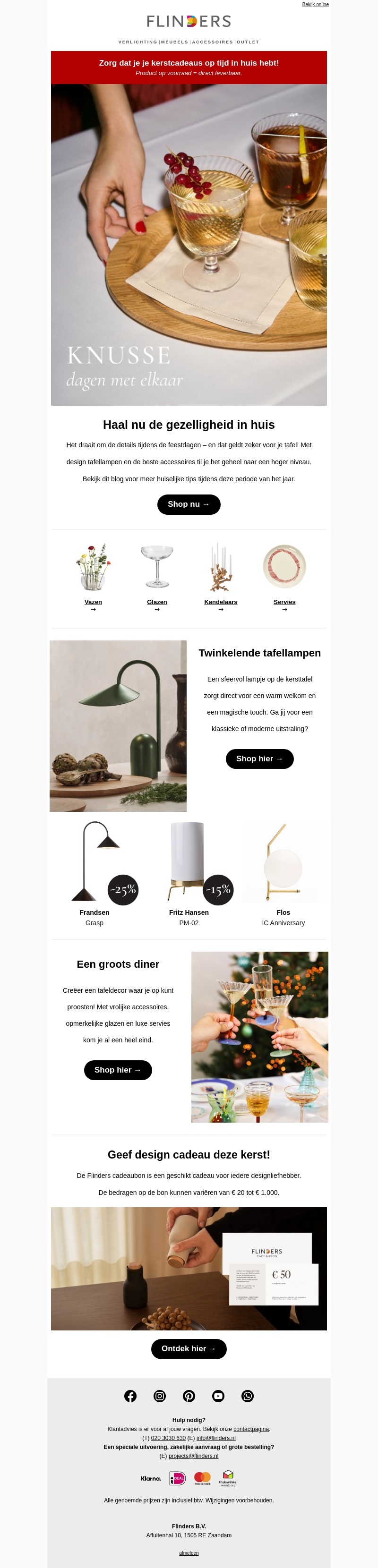 Maak van de feestdagen een stijlvol en gezellig feest met onze exclusieve designproducten. Van schitterende tafellampen tot verfijnd servies, de accessoires zijn perfect voor warme en intieme momenten. Geef dit jaar een uniek design cadeau en creΓ«er herinneringen die lang bijblijven. Ontdek nu onze topselectie en breng sfeer in huis.