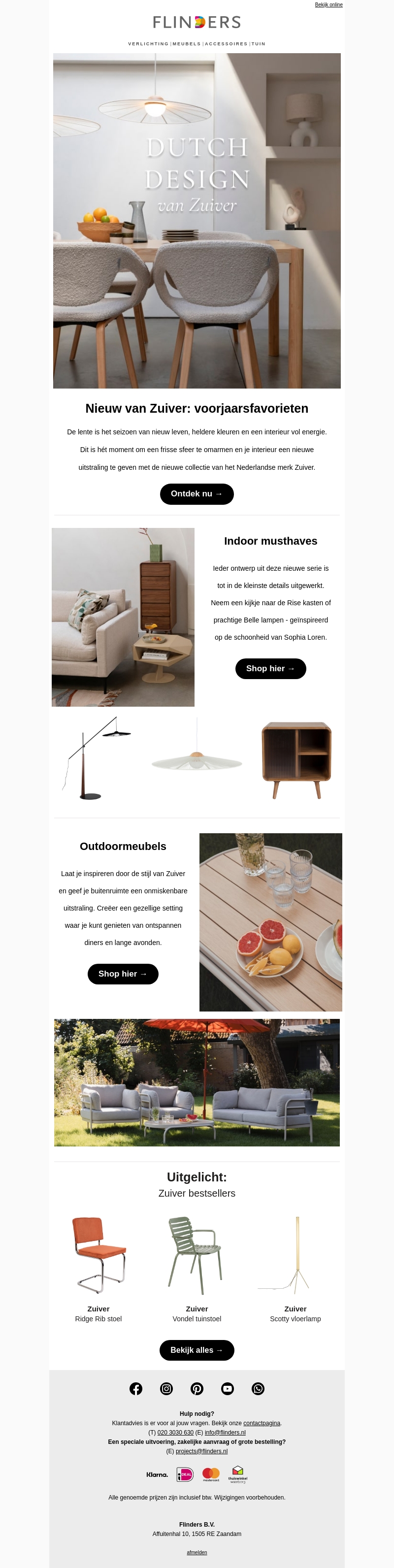 De lente is aangebroken en dat brengt nieuwe energie in je interieur. Ontdek de nieuwste collectie van Zuiver met frisse kleuren en stijlen. Van indoor musthaves tot stijlvolle outdoor meubels, Zuiver biedt alles wat je nodig hebt voor een opgefrist huis. Bekijk de Rise kasten en Belle lampen die geΓ―nspireerd zijn door Sophia Loren. CreΓ«er een ontspannen buitenruimte met de nieuwste trendy items. Shop de collectie nu en laat je inspireren door Zuiver.