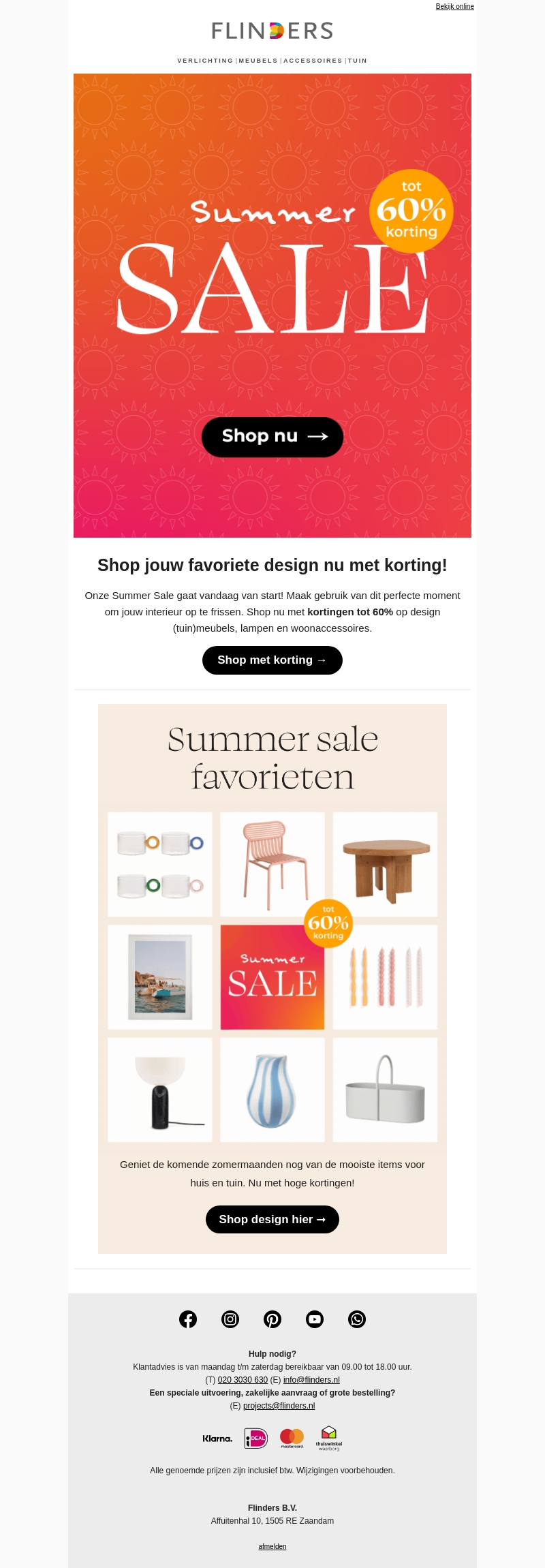 Onze Summer Sale gaat vandaag van start! Maak gebruik van dit perfecte moment om jouw interieur op te frissen. Shop nu met kortingen tot 60% op design (tuin)meubels, lampen en woonaccessoires.